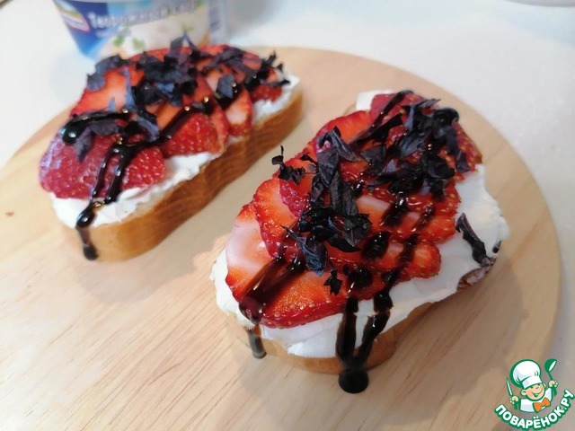 Дорогие поварята, начинается сезон клубники, поэтому делюсь с вами самым моим любимым летним завтраком, который я готовлю, наверное, уже лет 5. Сочетание теплого, хрустящего ломтика хлеба, с сочной клубникой на нежном творожно-сливочном облаке, приправленной пряной зеленью базилика и густым бальзамическим кремом, поверьте, не оставит вас равнодушным! Для бутербродов можно использовать любые сезонные сочные кисло-сладкие фрукты/ягоды. Мои фавориты – это клубника и нектарин. От всей души рекомендую попробовать и найти ваши собственные сочетания вкусов! За идею благодарю Наталию MN2012.
