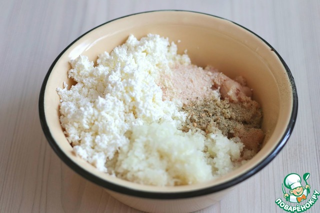 Добавить соль и белый молотый перец по вкусу. Добавить сметану (2 ст. ложки). При необходимости, если на ваш взгляд фарш оказался слишком плотной структуры, можно добавить сметаны чуть больше или добавить небольшое количество воды. Фарш хорошо вымешать.