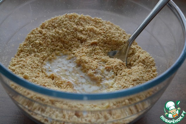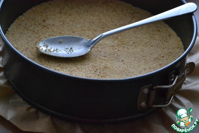 Выложить печенье и хорошо придавливая ложкой, распределить по всей форме.