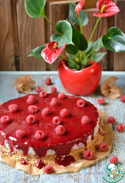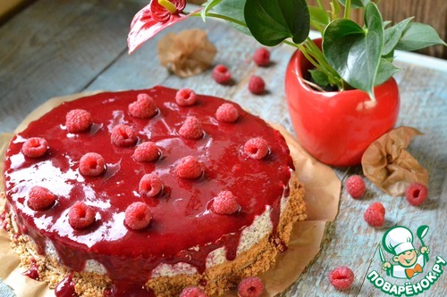 Помадку слегка остудить и нанести на охлажденный торт. Украсить свежей малиной.