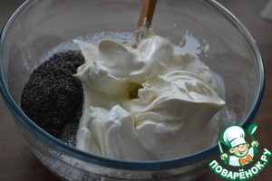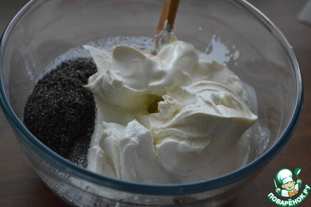 Приготовить маковый слой. Теплыми сливками (100мл)