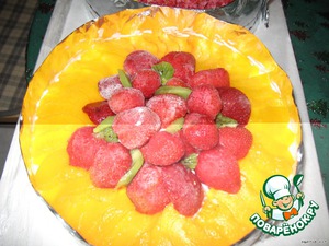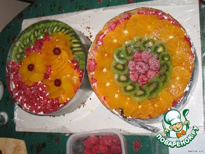 Затем полёт фантазии, выкладываем ягоды и фрукты, кисточкой наносим желе.