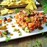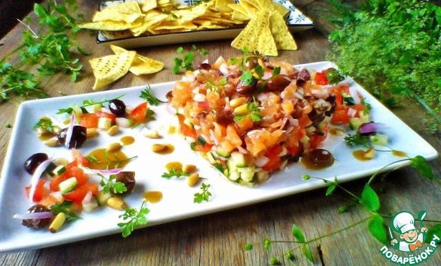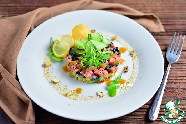 Рецепт «Тартар с кетой, овощами и фисташками»: