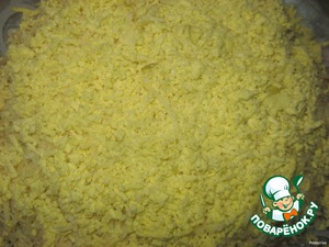 Белки, желтки, сыр натереть по отдельности.