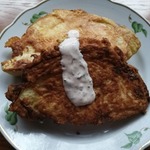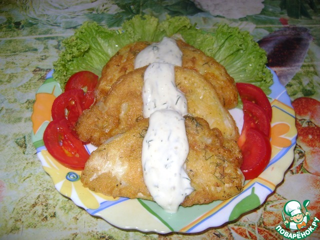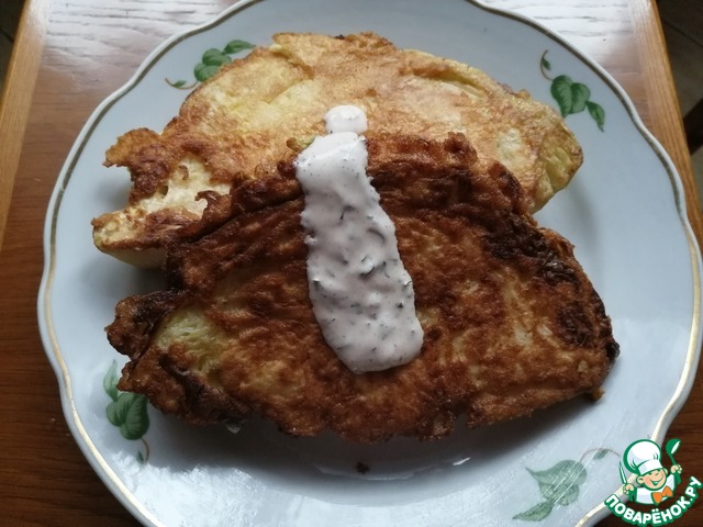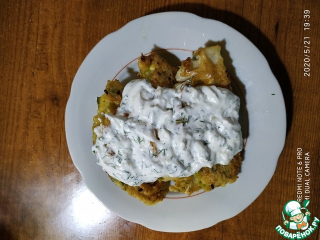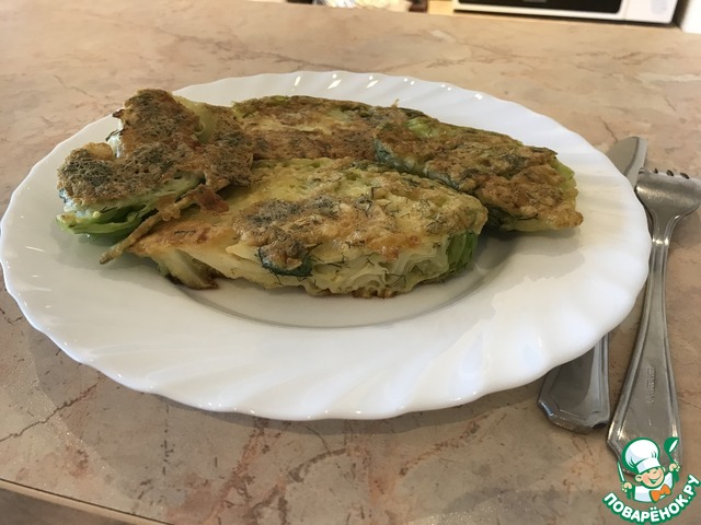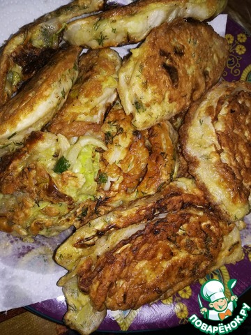 После достаем капусту и даем стечь воде. Яйца слегка взбить с солью, перцем и укропом. Обмакиваем капусту в муке и в яйце и обжариваем в масле до румяной корочки с обеих сторон.