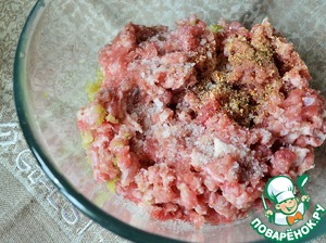 В это время приготовить фарш. Говядину измельчить в мясорубке ( решётка крупная), посолить, поперчить.