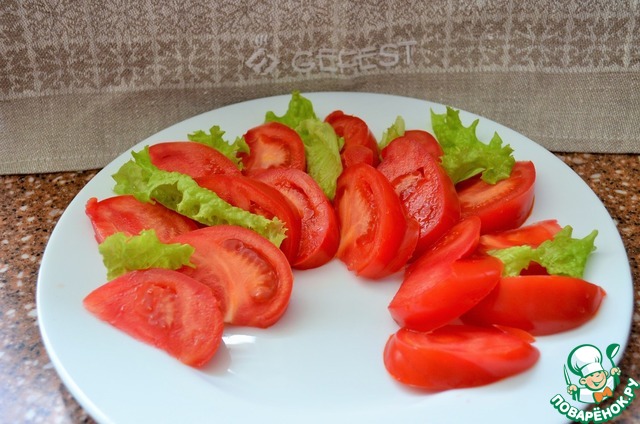 Вымыть помидор и зелень, обсушить. Помидор нарезать дольками.