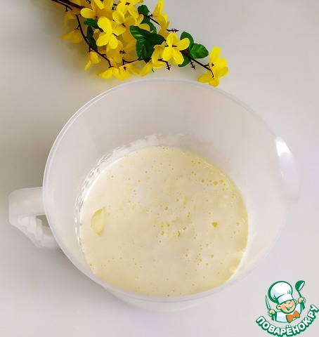 Для начала необходимо взбить 1 яйцо с сахаром, ванилином и щепоткой соли до увеличения в объёме.