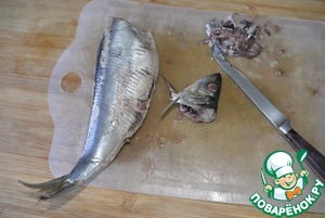 Убираем у сельди все внутренности, аккуратно чистим ножом, промываем, обсушиваем бумажным полотенцем.