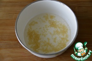 Заранее замачиваем желатин, согласно инструкции именно вашего желатина. Далее работаем с готовым раствором желатина или замоченными листами.