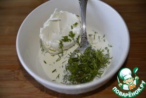 Смешиваем творожный сыр, сливки и рубленный укроп.