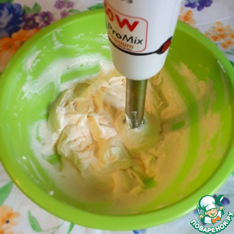 Погружным блендером хорошо взбить творог и желтки с сахаром. Получается масса похожая на густую сметану.