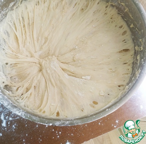 В подогретую воду добавляем сахарный песок, соль, дрожжи. После того, как дрожжи растворятся, добавляем растительное масло. И затем начинаем добавлять постепенно муку, размешивая ложкой. Тесто не должно быть густым. Весь процесс замешивается происходит в посуде, без вымешивания на столе. Тесто в результате должно получиться таким как на фото