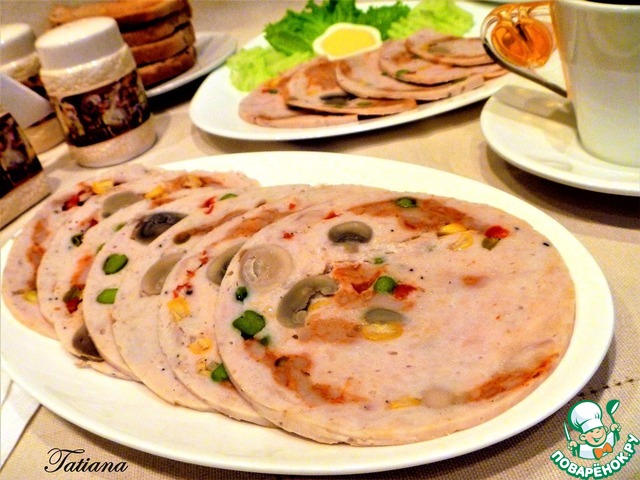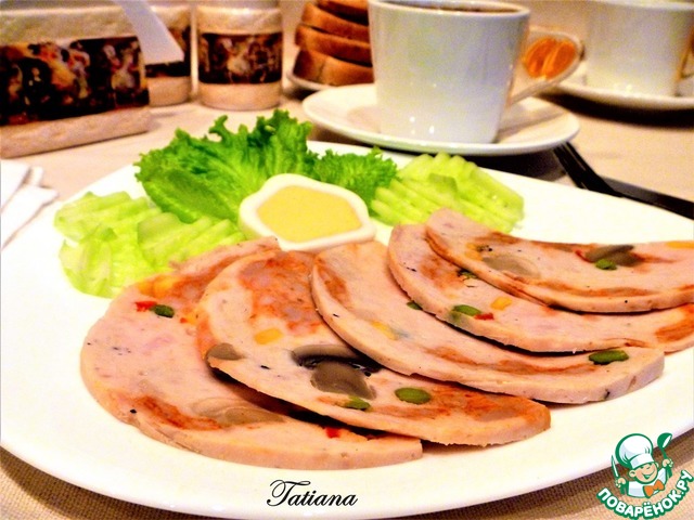 Рецепт «Колбаса куриная с овощами и грибами»: