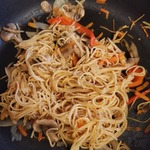 Спагетти с овощами на сковороде