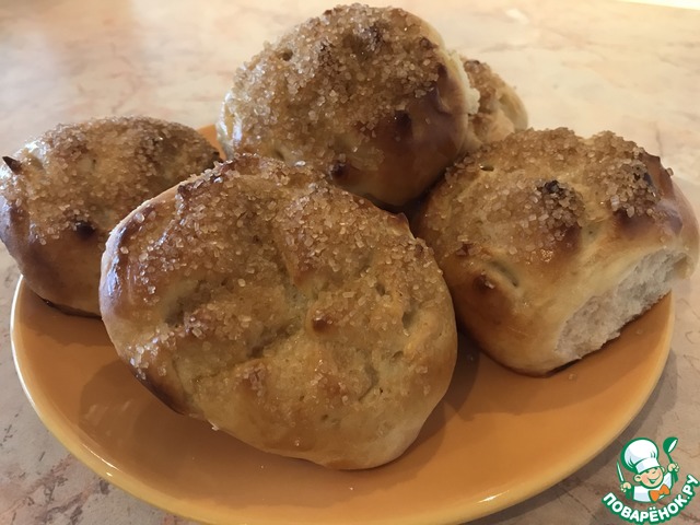 при выпекание образуется сахарная корочка, которая карамелизуется и придаст булочкам своеобразный вкус.