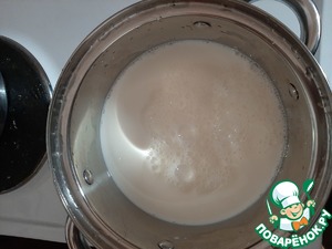 • В закипающее молоко добавить поломанный зефир, постоянно помешивать до полного растворения зефира.