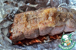 Готовое мясо обернуть в фольгу, и оставить для созревания на 15 - 30 минут.