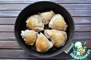 В раскаленной сковороде с растительным маслом обжариваю курицу со всех сторон до аппетитной румяности.