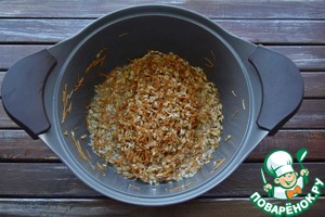 Всыпаю рис и помешивая обжариваю все еще 2 минуты.