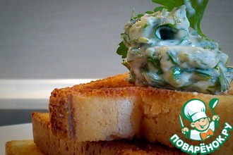 С тунца слить жидкость, добавить творожный сыр и мелко порезанную зелень, перемешать и выложить начинку сверху на тост. Готово! Приятного аппетита!
