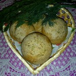 Тесто увеличилось в размере. Обминаем его хорошо и делим на 4 части. Если вы хотите булочки крупные, то поделите тесто на 3 части. Размер булочек для меня оптимальный. Скатываем тесто в шарики и выкладываем на противень на пекарскую бумагу или как я-на форму антипригарную. Накрываем полотенцем и опять ставим в тепло на 15 минут. Булочки подрастут. Обмазываем верх булочек маслом и присыпаем сухим розмарином. Ставим в разогретую духовку при т-180 С на 15 минут. Ориентируйтесь на свою духовку. У меня небольшой духовой шкаф на 18 л, печёт быстро и отлично.