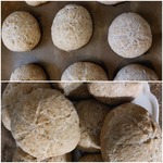 Делала из обычной пшеничной муки вместо цельнозерновой + 20 г ржаной, как и в рецепте. Ничем не посыпала. По вкусу получились как покупной пшеничный или арнаутка.