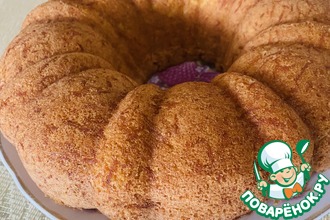 Выкладываем нашу смесь в предварительно смазанную маслом форму, закидываем в духовку и забываем минут на 35-40. У меня с этой формой получается не менее 40 минут, иногда и 45. Но если у вас круглая форма, и побольше диаметром, то ваш корж может быть готов уже через 25-30 минут. Проверяйте.