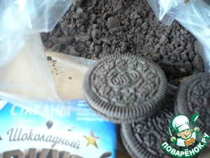 Также измельчите шоколадное печенье (я взяла печенье "орео").