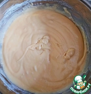 Добавляем просеянную муку, пакетик ванилина, соду гашенную уксусом, хорошо перемешиваем, чтобы не было комочков, тесто получается как густая сметана