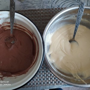 Делим тесто на две равные части и в 1 из них добавляем какао и хорошо перемешиваем