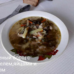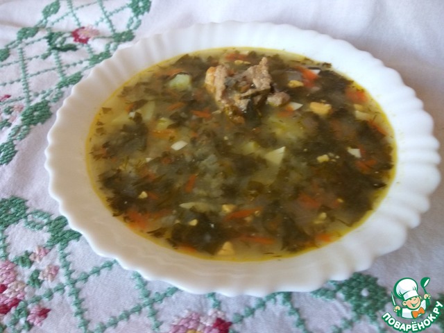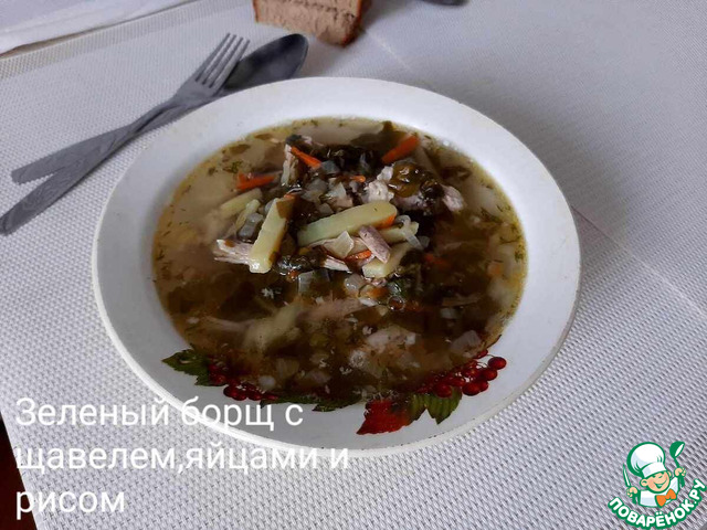 Рецепт «Зеленый борщ с щавелем, яйцами и рисом»: