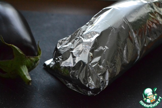 Так продолжать "запекать" баклажан до тех пор, пока при постукивании по фольге не услышите глухой звук.