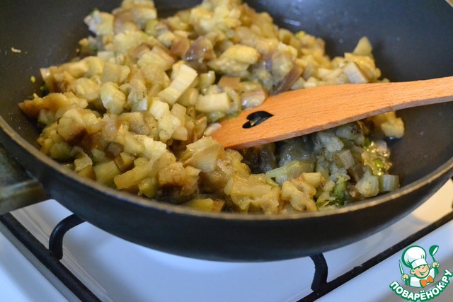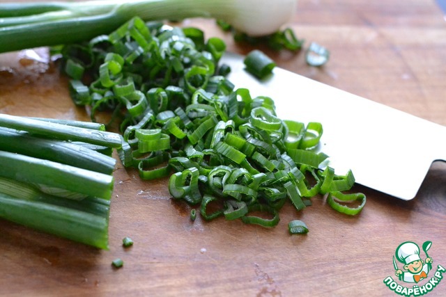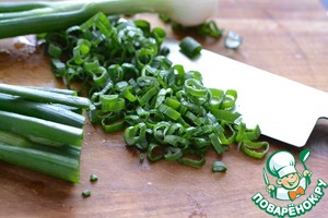 Нарезать мелко зеленый лук. Обжарить его на подсолнечном масле.