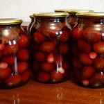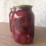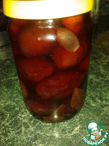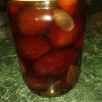 Тоже из азербайджанской кухни. Очень интересная заготовочка получается. Сливы очень вкусные, остренькие и не очень соленые.