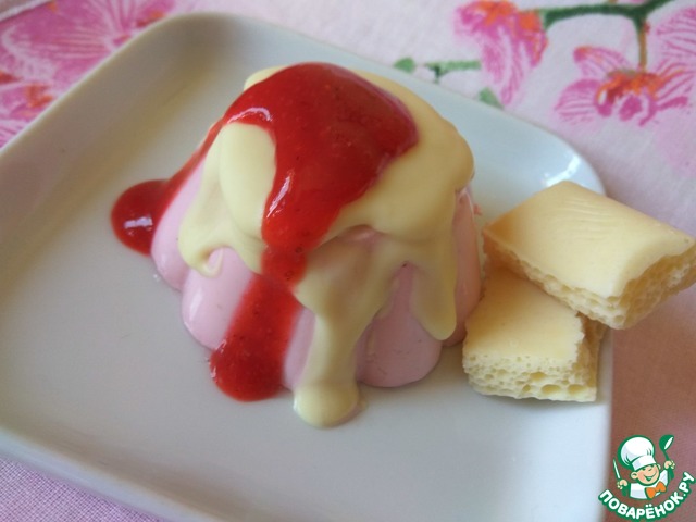 Желатин добавить к творожно- клубничной массе, хорошо перемешать. С таким количеством желатина десерт получается плотный, если вы хотите получить более мягкое и нежное желе, то возьмите желатина меньше.