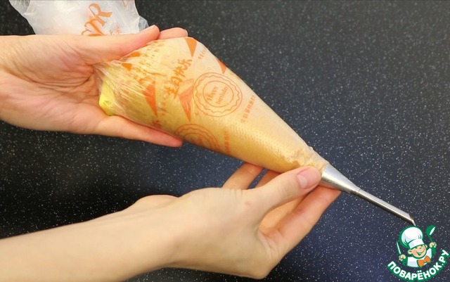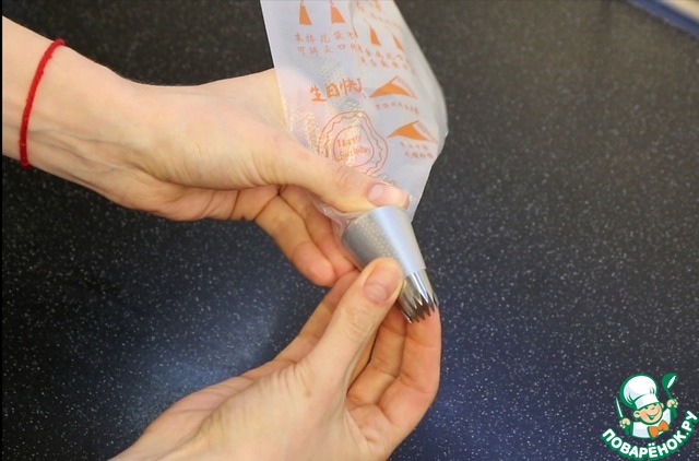 Перекладываю в кондитерский мешок вот с такой насадкой для наполнения пирожных!