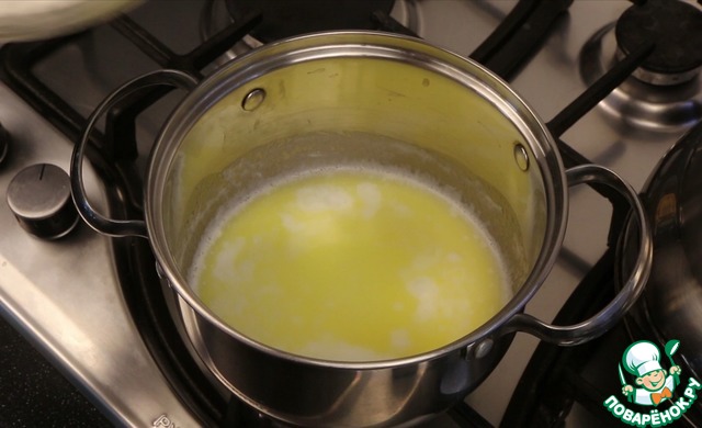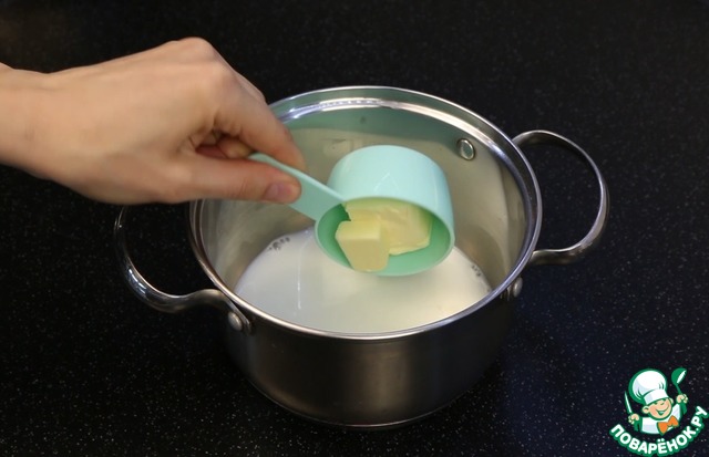 Сливки соединяю с маслом и подогреваю до горячего состояния.