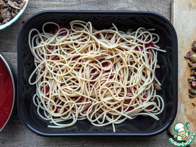 Рецепт «Лазанья из спагетти с шампиньонами»: