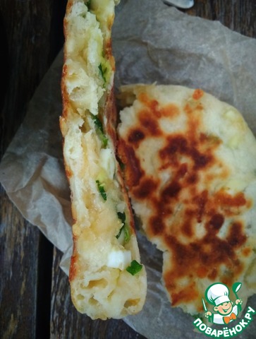 Рецепт «Сырные лепёшки с луком и яйцом»: