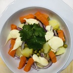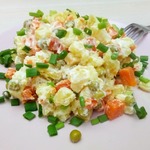 Предлагаю очень простой картофельный салат с морковью и зеленым горошком. Горошек использовала молодой из заморозки. Идею взяла у Настасьи Богдаревой, спасибо большое.