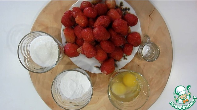 Выливаем заливку и выкладываем нарезанные ягоды.