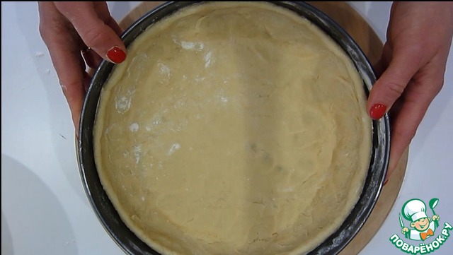 Выкладываем в форму диаметром 26 см и убираем в холодильник на 15-20 минут. -