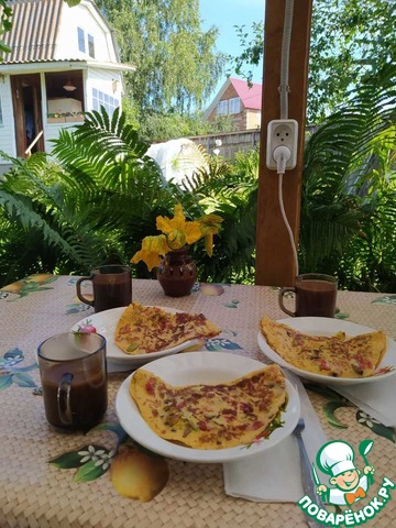 Скажу сразу, выставить этот омлет - не моя затея, на сайте подобных рецептов - вагон и маленькая тележка, но на этом настояла супруга! Он ей очень нравится и она часто просит приготовить его на завтрак, мотивируя это тем, что очень полезный, сытный и вообще... После последнего довода я сдался, и мы разделили последствия этого поступка - шишки ей, лавры мне...