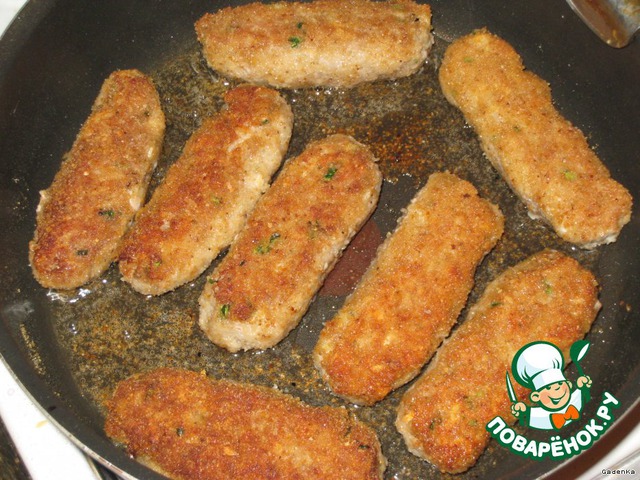 • Сковороду с растительным маслом хорошо разогреть. Палочки обвалять в сухарях и обжарить с двух сторон до готовности.