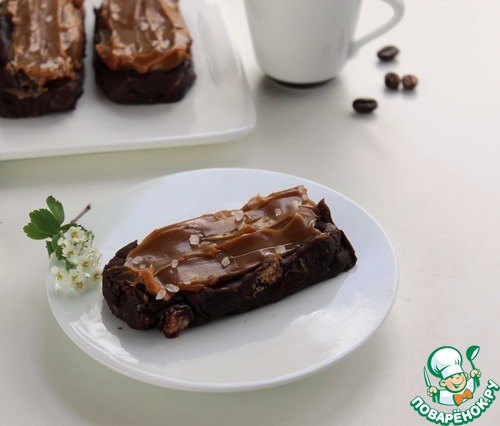 Когда фадж застынет, в легком художественном беспорядке нанесите вареную сгущенку и посыпьте морской солью.