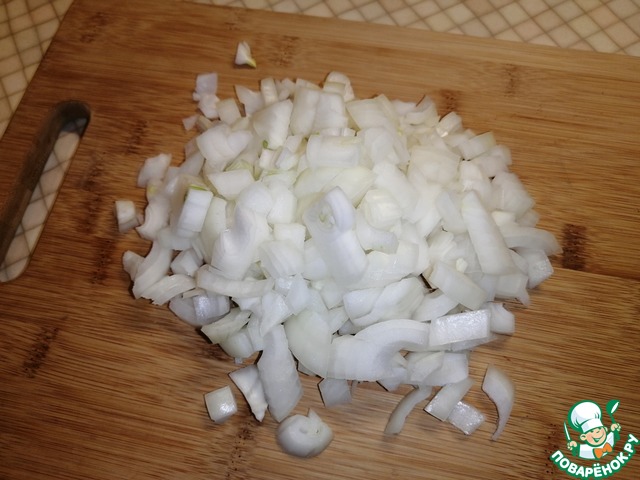 Лук нарезать небольшими кубиками.