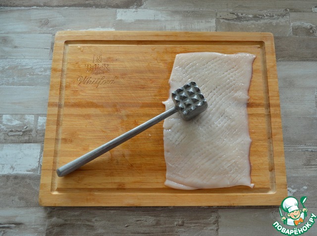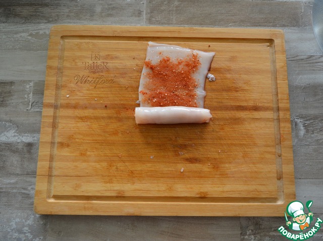 Посыпьте этой смесью филе кальмара и сверните рулетиком