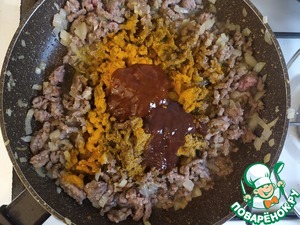 Добавляем карри, куркуму, вустерский соус, чатни, абрикосовый джем, уксус.