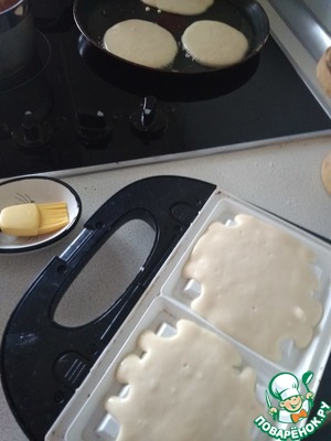 Перед первым приготовлением смазать вафельницу или сковороду маслом, а потом этого делать уже не нужно.
